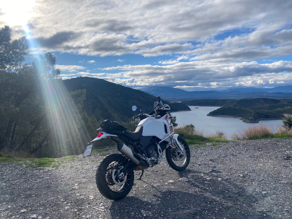 The track started with gravel service roads and had shortcuts with light up and downhills. I tried a few of them, and when I reached the mountains, it began to be challenging, I decided to stick with the asphalt. The OEM tires are not great on slippery tracks, and I don’t have much off-road experience on the big adventure moto yet.