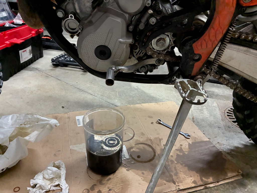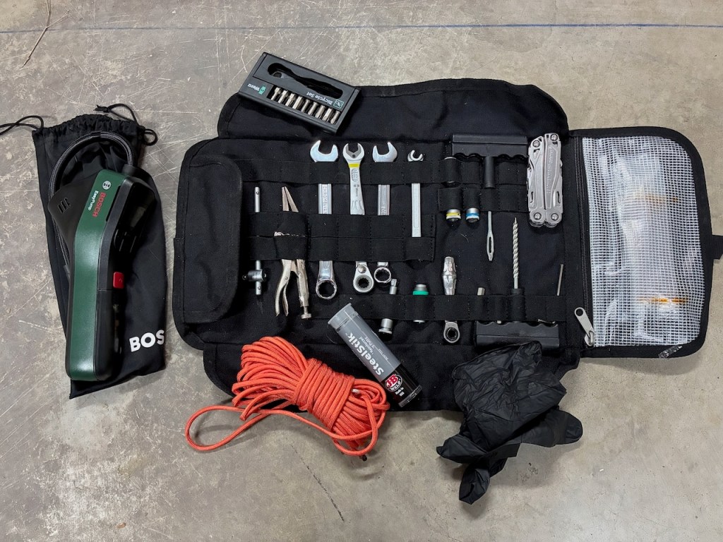I changed KTM’s oil, filter, and performed all required maintenance steps for a small service. Then, taking the opportunity, I reorganized tool rolls to have one for KTM and one for Ducati. Both bikes use different tools – one uses even-sized wrenches, while the other uses odd-sized wrenches.