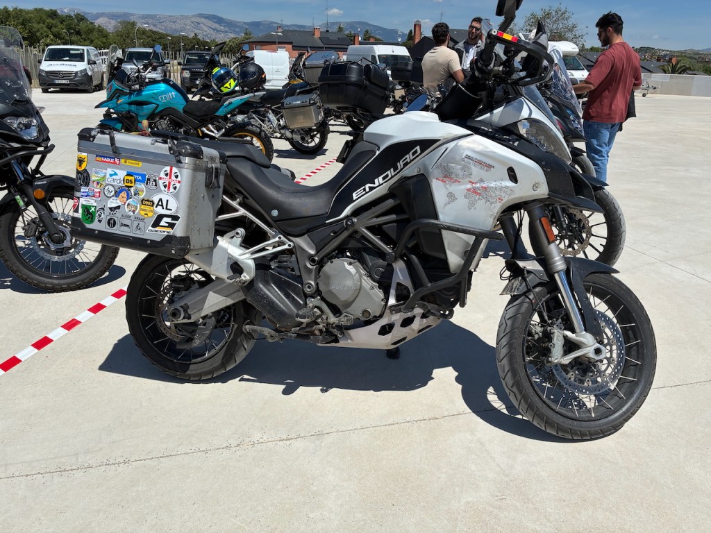 This month, I attended an Adventure Experience event held in a neighboring city. It was a mix of ADV bike sales event, tiny training sessions, motorcycle test rides, and an opportunity to socialize. I took a few photos of attendees’ bikes, purchased a nice helmet belt carrier, and watched some hard adventure riders practice.